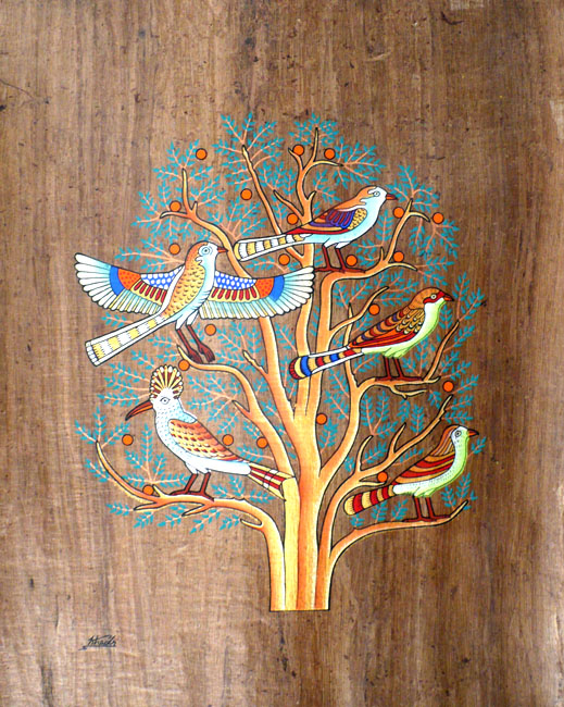 * Sur un véritable papyrus antique et peint à la main * Fond Clair dorée * Représentant : L'arbre de vie * Taille : 40*60 cm . Histoire : Ce dessin peint sur le revêtement calcaire de la tombe de Knoum-Hotep III situé à Béni-Hassan (XII° Dynastie, règne de Sésostris II, environ 1895 av. J.C.), fait partie d'une scène plus large de capture d'oiseaux dans les marais. Comme les scènes traditionnelles de chasse, elle a pour but d'assurer au défunt une nourriture en permanence, au cas où les vivants oublient de remplir la table d'offrandes du défunt. Cet arbre est situé en bas à gauche de la représentation de la capture au filet. C'est au Moyen Empire que l'art égyptien acquiert plus de finesse. On le voit bien avec le détail de ces cinq oiseaux dans un acacia, quatre sont représentés posés et le cinquième en train de se poser (il a les ailes déployées et les pattes tendues vers le bas). Bien que représentés hors du filet, ces oiseaux sont destinés à être capturés par le défunt et mangés par lui. Ces cinq oiseaux sont également le symbole des cinq périodes les plus importantes de la vie de l'homme à savoir la naissance, l'enfance, l'adolescence, l'âge de l'union et la vieillesse. Un cadeau décoration et égyptologique ...
