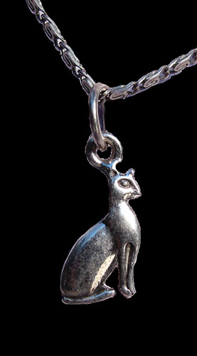 Bastet était une déesse à tête de chat (myéou en égyptien). On raconte que la déesse lionne Sekhmet, fille de Rê et oeil du soleil , s'était mise un jour en colère et s'était enfuie en Nubie. On parvint à l'apaiser et, de retour, elle se transforma en chatte paisible. Sekhmet buveuse de sang, devint Bastet buveuse de lait. Remarquons que le phonogramme bas est une jarre. En son temple de Bubastis (Per Bastet en égyptien, ce qui signifie : la maison de Bastet ), la déesse-chatte était adorée depuis l'Ancien Empire mais, lorsque les rois libyens de la XXII dynastie firent de Bubastis leur capitale, son culte fut particulièrement développé et Hérodote raconte que de son temps plus de 700.000 personnes se déplaçaient pour venir assister aux fêtes de Bastet . Dans son temple, les effigies de la déesse étaient particulièrement nombreuses et il en existe aujourd'hui de multiples exemplaires de par le monde. Comme les autres animaux sacrés d'Egypte, les chats étaient momifiés à Bubastis. Inconnu en Europe à cette époque, cet animal y fut introduit par l'Egypte.