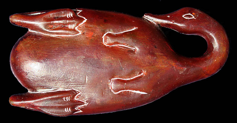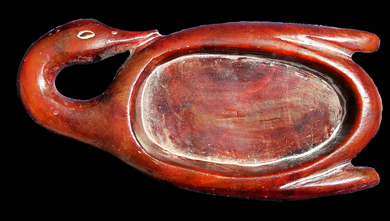 * Palette a fard ou a onguents canard en stéatite verni rouge