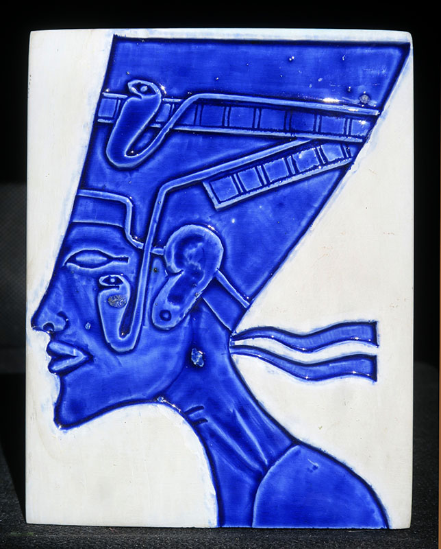 * Stèle portrait de Néfertiti * En stéatite, céramique bleu * Taille : hauteur = 13cm, largeur = 10cm, épaisseur = 0,6cm .